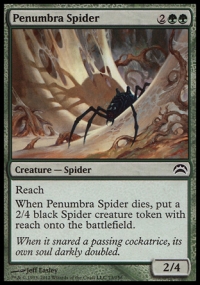 When Penumbra Spider dies, put a 2/4 black Spider creature token with reach onto the battlefield.