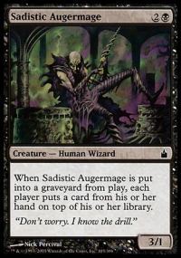 When Sadistic Augermage dies, each player puts a card from his or her hand on top of his or her library.
