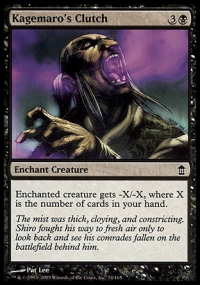 Enchanted creature gets -X/-X, where X is the number of cards in your hand.