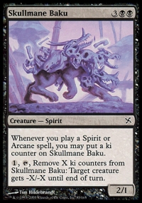 Whenever you cast a Spirit or Arcane spell, you may put a ki counter on Skullmane Baku.