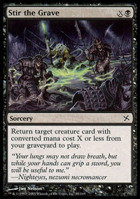 Return target creature card with converted mana cost X or less from your graveyard to the battlefield.