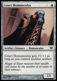 Court Homunculus gets +1/+1 as long as you control another artifact.