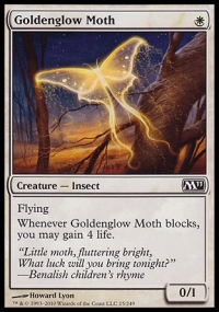 Whenever Goldenglow Moth blocks, you may gain 4 life.
