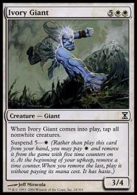 When Ivory Giant enters the battlefield, tap all nonwhite creatures.