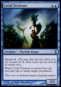 When Coral Trickster is turned face up, you may tap or untap target permanent.
