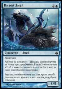 Metalcraft — As long as you control three or more artifacts, Spire Serpent gets +2/+2 and can attack as though it didn't have defender.