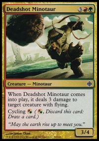 When Deadshot Minotaur enters the battlefield, it deals 3 damage to target creature with flying.