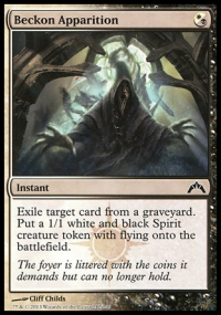 Exile target card from a graveyard. Put a 1/1 white and black Spirit creature token with flying onto the battlefield.