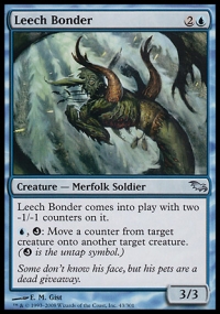 Leech Bonder enters the battlefield with two -1/-1 counters on it.