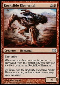Whenever another creature dies, you may put a +1/+1 counter on Rockslide Elemental.
