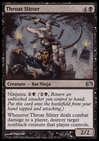Whenever Throat Slitter deals combat damage to a player, destroy target nonblack creature that player controls.
