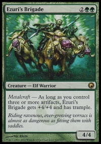 Metalcraft — As long as you control three or more artifacts, Ezuri's Brigade gets +4/+4 and has trample.