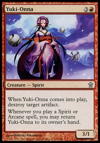 When Yuki-Onna enters the battlefield, destroy target artifact.