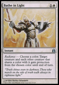 Radiance — Choose a color. Target creature and each other creature that shares a color with it gain protection from the chosen color until end of turn.