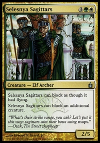 Selesnya Sagittars can block an additional creature.