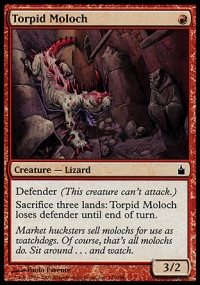 Sacrifice three lands: Torpid Moloch loses defender until end of turn.