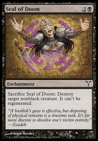 Sacrifice Seal of Doom: Destroy target nonblack creature. It can't be regenerated.