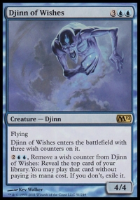 Djinn of Wishes enters the battlefield with three wish counters on it.