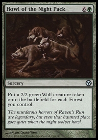 Put a 2/2 green Wolf creature token onto the battlefield for each Forest you control.
