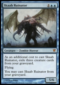 As an additional cost to cast Skaab Ruinator, exile three creature cards from your graveyard.