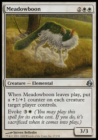 When Meadowboon leaves the battlefield, put a +1/+1 counter on each creature target player controls.