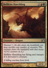 Hellkite Hatchling has flying and trample if it devoured a creature.