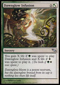 You gain X life if {G} was spent to cast Dawnglow Infusion and X life if {W} was spent to cast it.