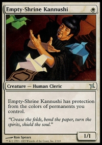 Empty-Shrine Kannushi has protection from the colors of permanents you control.