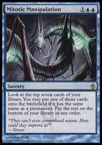 Look at the top seven cards of your library. You may put one of those cards onto the battlefield if it has the same name as a permanent. Put the rest on the bottom of your library in any order.