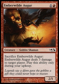 Sacrifice Emberwilde Augur: Emberwilde Augur deals 3 damage to target player. Activate this ability only during your upkeep.