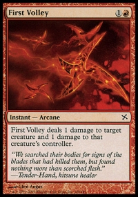First Volley deals 1 damage to target creature and 1 damage to that creature's controller.