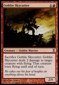 Sacrifice Goblin Skycutter: Goblin Skycutter deals 2 damage to target creature with flying. That creature loses flying until end of turn.