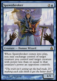 When Spawnbroker enters the battlefield, you may exchange control of target creature you control and target creature with power less than or equal to that creature's power an opponent controls.