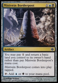 You may pay {1} and return a basic land you control to its owner's hand rather than pay Mistvein Borderpost's mana cost.