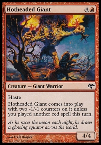 Hotheaded Giant enters the battlefield with two -1/-1 counters on it unless you've cast another red spell this turn.