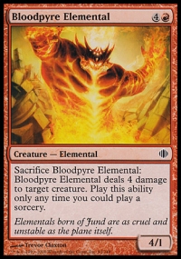 Sacrifice Bloodpyre Elemental: Bloodpyre Elemental deals 4 damage to target creature. Activate this ability only any time you could cast a sorcery.