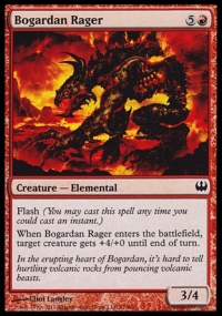 When Bogardan Rager enters the battlefield, target creature gets +4/+0 until end of turn.