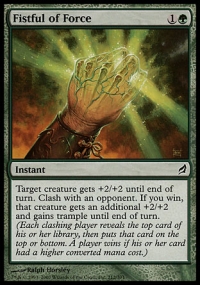 Target creature gets +2/+2 until end of turn. Clash with an opponent. If you win, that creature gets an additional +2/+2 and gains trample until end of turn.