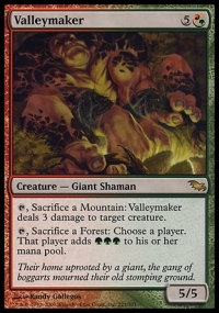 {T}, Sacrifice a Mountain: Valleymaker deals 3 damage to target creature.