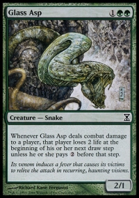 Whenever Glass Asp deals combat damage to a player, that player loses 2 life at the beginning of his or her next draw step unless he or she pays {2} before that step.